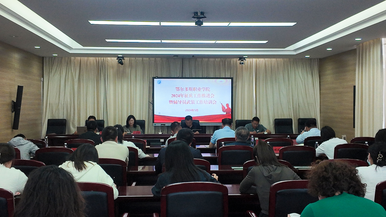 为深入学习贯彻习近平强军思想,全面贯彻落实党中央、国务院对高校毕业生征兵工作的决策部署,扎实做好我院2024年征兵工作,5月8日下午,学院召开2024年度征兵工作推进会暨辅导员武装工作培训会,党委委员、副院长哈达出席会议并讲话,征兵工作相关职责部门负责人,各系党总支书记(副书记)、学工科负责人、征兵工作人员、专职辅导员和退役士兵学生代表参加会议。