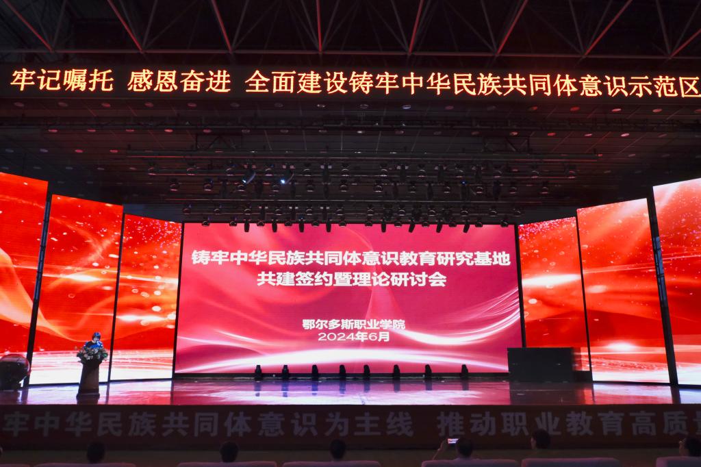 马建峰在致辞中说,近年来,开云手机官方版在线入口始终坚持党对民族工作的全面领导,坚决践行“为党育人、为国育才”的使命担当,深入落实“立德树人”根本任务,以铸牢中华民族共同体意识为主线,以创建民族团结进步示范单位为抓手,把民族团结进步教育融入教育教学、人才培养全过程,创新实施“五抓五促五提升”工作举措,深入推进“石榴籽”育人工程,推动人才培养与民族团结进步教育全面融合,在民族团结进步创建、助力全方位建设模范自治区等方面进行了有益探索,以有形之举、有感之策、有效之方,推进新时代党的民族工作高质量发展。学院获批自治区铸牢中华民族共同体意识研究(培育)基地、鄂尔多斯市铸牢中华民族共同体意识教育研究基地后,充分学习借鉴各地、各高校的经验做法,着力打造高水平的铸牢中华民族共同体意识研究和教育实践基地。学院与内蒙古大学、鄂尔多斯市博物院签署合作共建协议,标志着我院在民族工作理论与实践研究方面取得了又一个重要进展,必将有力推动学院铸牢中华民族共同体意识教育研究基地建设管理水平再上新台阶,为开展理论研究和实践探索提供更加有力的支撑。