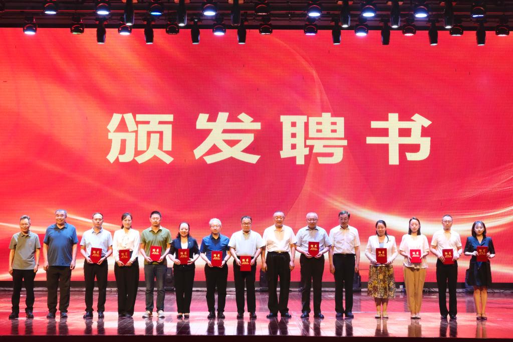 马建峰、宋希文为铸牢中华民族共同体意识教育研究基地第一届学术委员会主任委员乔明,副主任委员、首席专家奇海林和学术委员会委员颁发聘书。