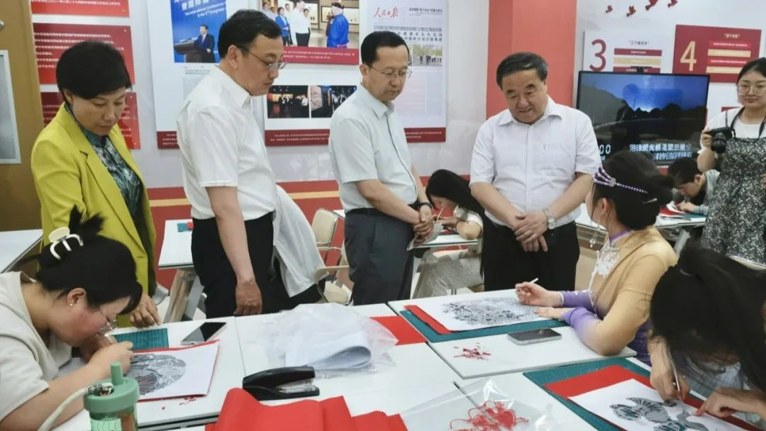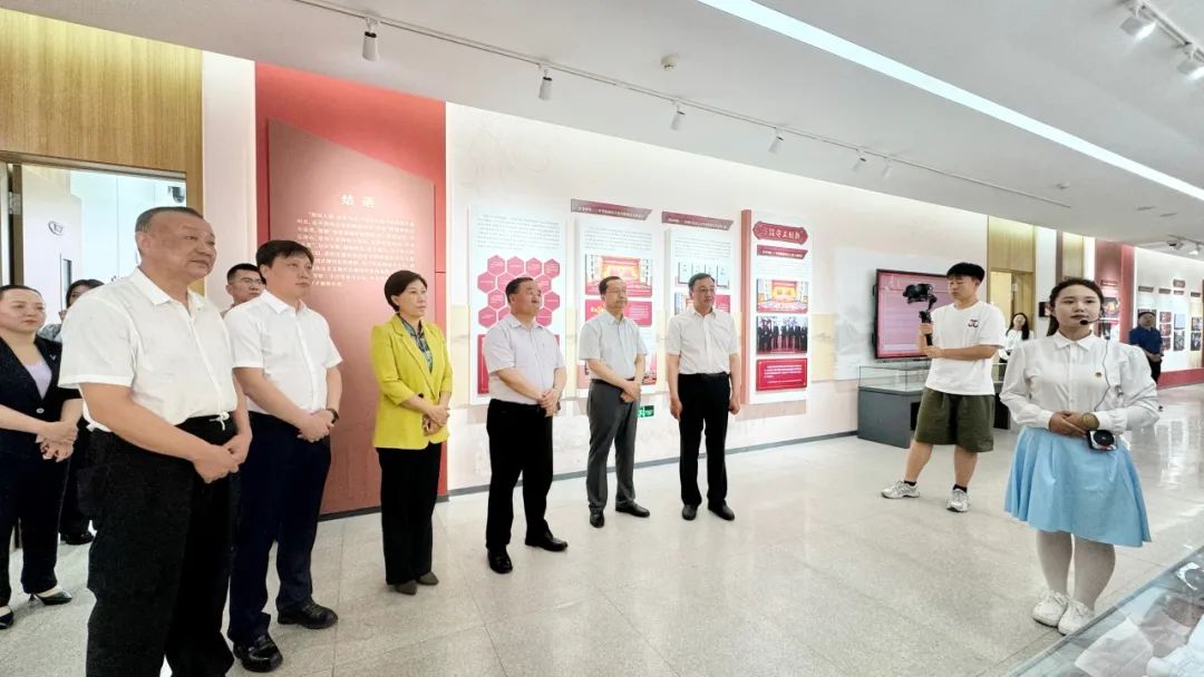 与会领导和嘉宾一起参观了学院铸牢中华民族共同体意识教育研究基地,并围绕高校如何深入开展铸牢中华民族共同体意识教育研究工作进行了研讨交流。