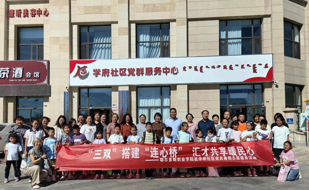 为走好新时代党的群众路线,持续深化“双报到双服务双融入”工作机制,切实提升党组织和广大在职党员服务人民群众的能力和水平。7月17日上午,学院党委副书记陶文辉,党委委员、副院长杭刚及驻康巴什区学府社区的全体在职党员齐聚社区党群服务中心,共同参与并见证学院在职党员“匠心树人”志愿服务队成立暨暑期志愿服务活动启动仪式。鄂尔多斯市教体局职业教育与高等教育管理科科长刘鹏、青春山街道学府社区党总支书记屈伟科及社区全体工作人员、居民代表共同参加活动。