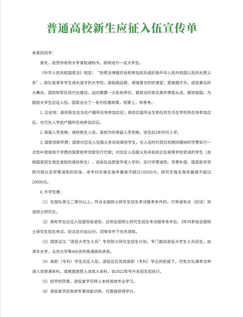 #4普通高校新生应征入伍宣传单