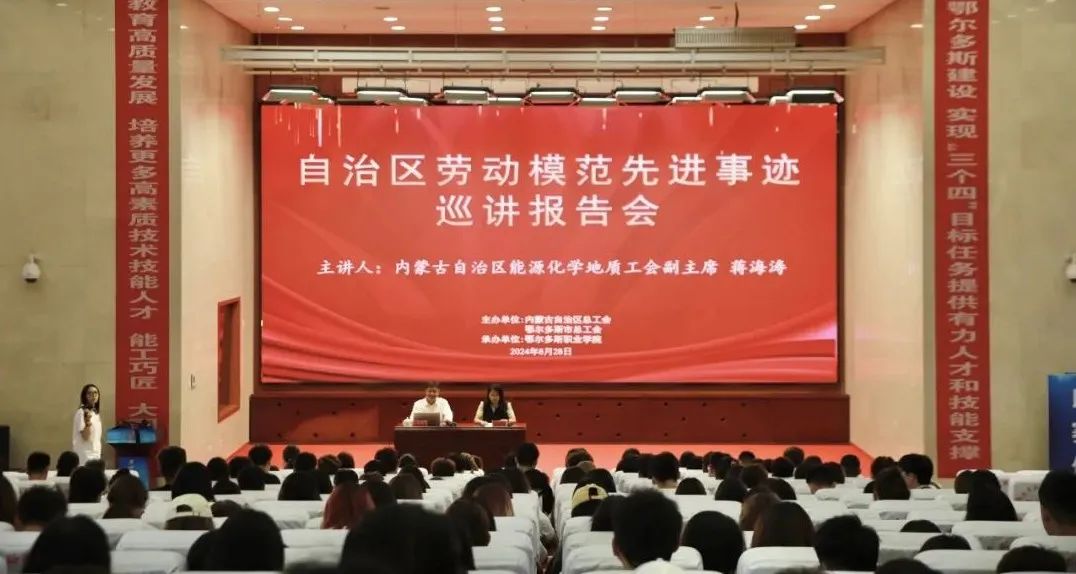 8月28日上午,内蒙古自治区总工会、鄂尔多斯市总工会联合学院开展自治区劳动模范先进事迹巡讲报告会。宣讲会由学院工会主席李萍主持,无课教师和学生代表参加了宣讲活动。