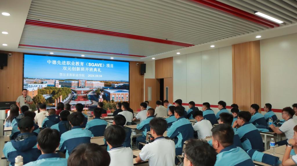 9月4日,学院机电工程系中德先进职业教育合作项目(SGAVE)双元创新班开班典礼在学院举行。学院党委副书记、院长宋希文,党委委员、副院长杭刚,中德项目组专家蒋磊、黄炳超、蔚书凝,教务处、机电工程系部分教师及2024级机电一体化技术专业SGAVE双元创新班学生共70余人参加开班典礼。