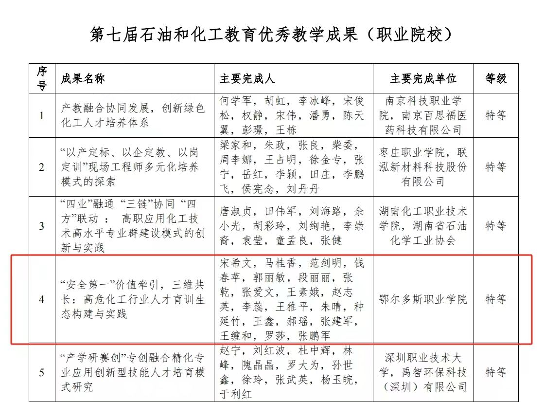 学院化学工程系教学成果《“安全第一”价值牵引,三维共长:高危化工行业人才育训生态构建与实践》在500余项成果中脱颖而出,荣获特等奖!