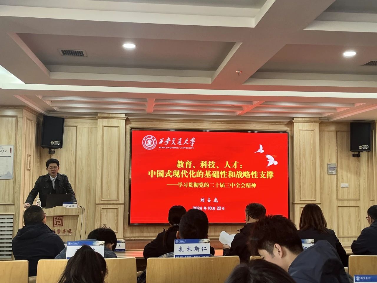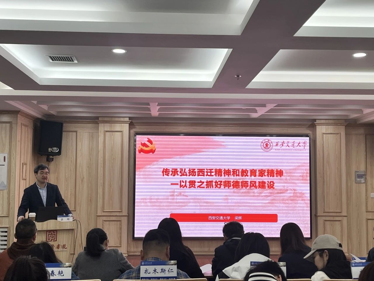 为深入学习贯彻党的二十届三中全会和全国教育大会精神,落实党管人才责任,助力全市人才友好型城市建设,教育引导学院各类人才当好教书育人的“大先生”、创新研究的“新人才”、改革发展的“推动者”和引才育才的“代言人”,10月21日,学院2024年高层次高技能人才创新发展培训班在西安交通大学开班,各系部、部门的40多名教职工参加。西安交通大学党委宣传部副部长、教师工作部副部长梁辉出席开班式并致辞,学院党委委员、副院长杭刚出席开班式并讲话。