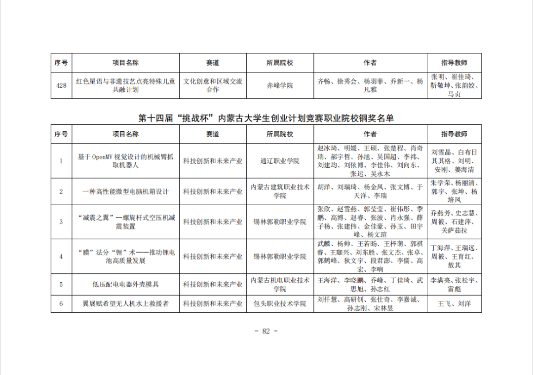 喜报第十四届“挑战杯”内蒙古大学生创业计划竞赛