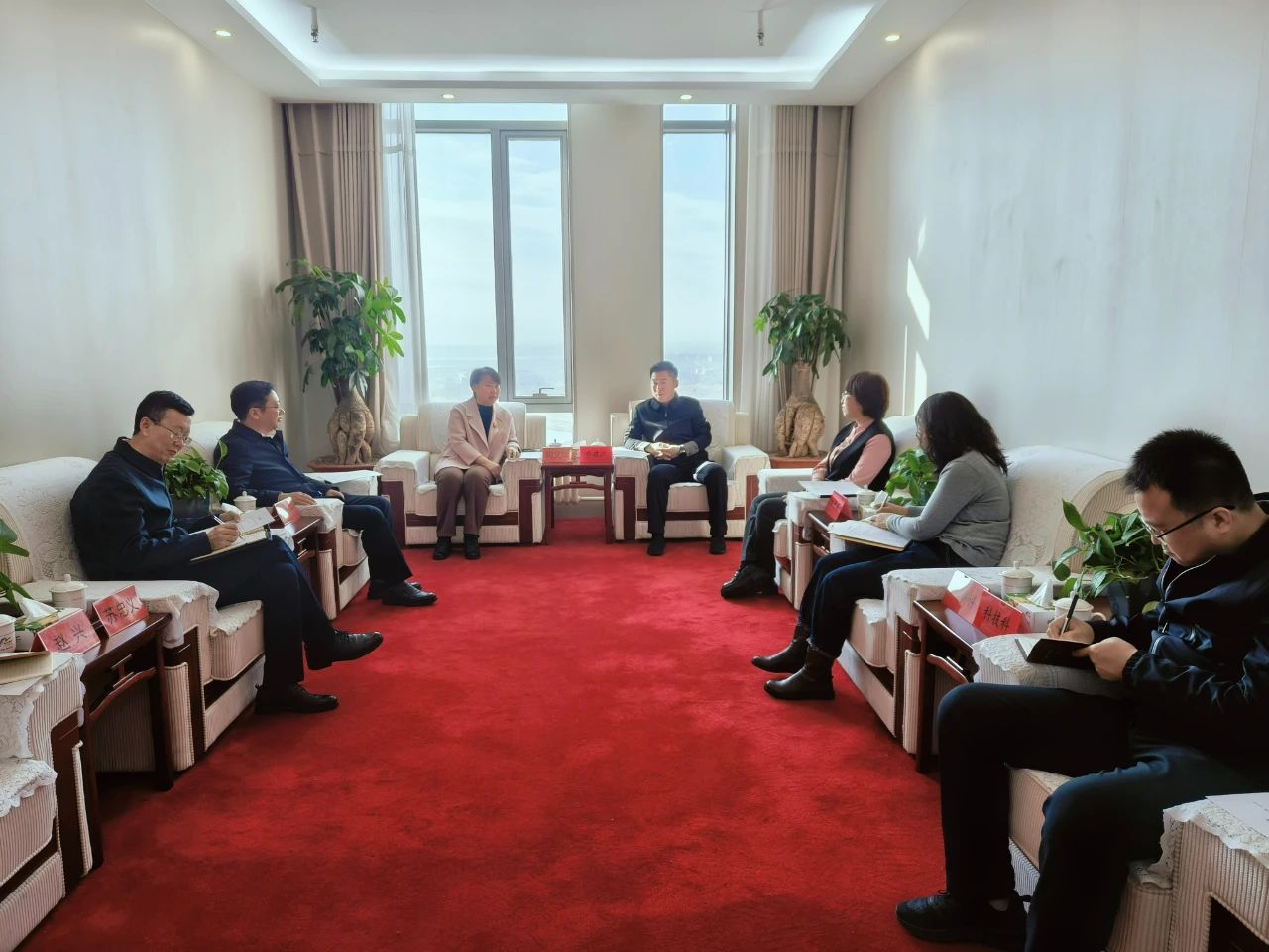 11月11日,学院党委副书记陶文辉,党委委员、副院长任光飞带队拜访市农牧局,就鄂尔多斯市乡村振兴学院建设有关事宜与市委农牧办主任、市农牧局党组书记、局长乔建江,市农牧局党组成员、副局长班慧丽进行座谈交流。