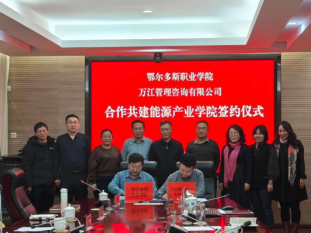 12月30日,我院与万江管理咨询有限公司举行“万江能源产业学院”校企合作签约仪式。党委副书记、院长宋希文,党委委员、副院长杭刚,万江管理咨询有限公司总经理助理王飞宇出席签约仪式。签约仪式上,双方对学校和企业的情况进行了介绍,就近年来在校企合作联合培养人才,开设订单班、工匠班,共同编写教材,开展国际交流合作方面取得的成绩进行了深入交流。