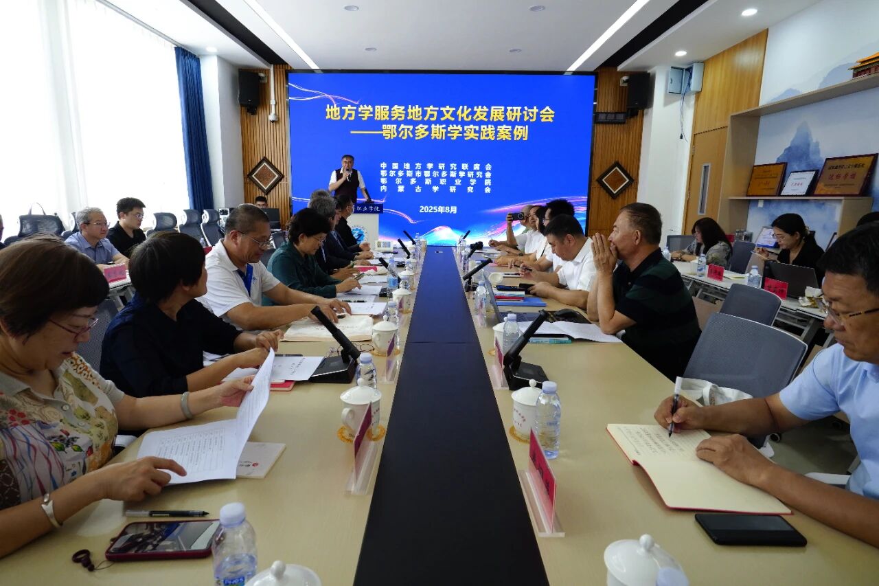8月11日,由中国地方学研究联席会指导、内蒙古学研究会和鄂尔多斯学研究会主办的地方学服务地方文化发展研讨会在我院召开。鄂尔多斯学研究会会长奇海林主持会议,中国地方学研究联席会主席、北京联合大学北京学研究院首席专家、教授张宝秀,自治区社科联党组书记、主席乌恩奇,鄂尔多斯市社科联党组书记、主席王冠中,内蒙古学研究会会长、教授胡益华,韩国区域学论坛会长,首尔市立大学首尔学研究所前所长、教授梁承雨,我院党委副书记陶文辉出席会议并致辞。来自中韩两国的专家学者齐聚一堂,旨在围绕地方学理论创新与地方学服务地方文化贡献智慧。