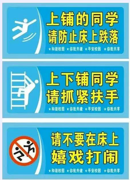 5、不直接在床上拿取床下物品在床上休息时,如果需要拿取床下的物品,要下床拿取,切勿因为怕麻烦图方便直接在床铺上拿取床下物品,避免摔落。特别提醒:寝室内有任何设施设备损坏,同学须及时到宿舍阿姨处报修,以确保正常生活。