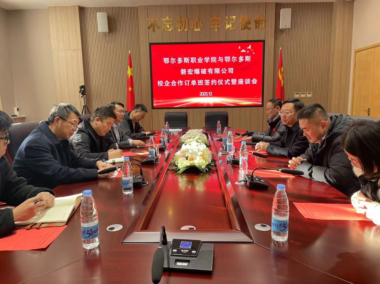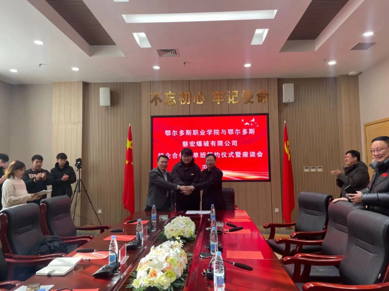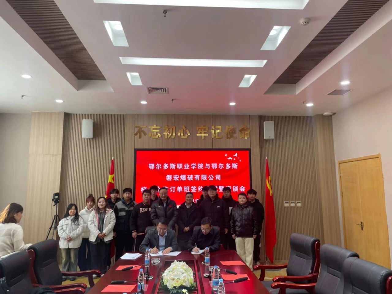 为深化产教融合、推动校企合作,全方位提升育人质量,12月21日,学院与鄂尔多斯市磐宏爆破有限公司签订《校企合作订单班培养协议》,并举行订单班学员见面会。鄂尔多斯市磐宏爆破有限公司综合办公中心主任姜利军,学院党委委员、副院长任光飞,党委委员、宣传部部长、资源工程系党总支书记付瑞,招生就业处处长刘月星,教师代表及订单班学员出席了仪式。