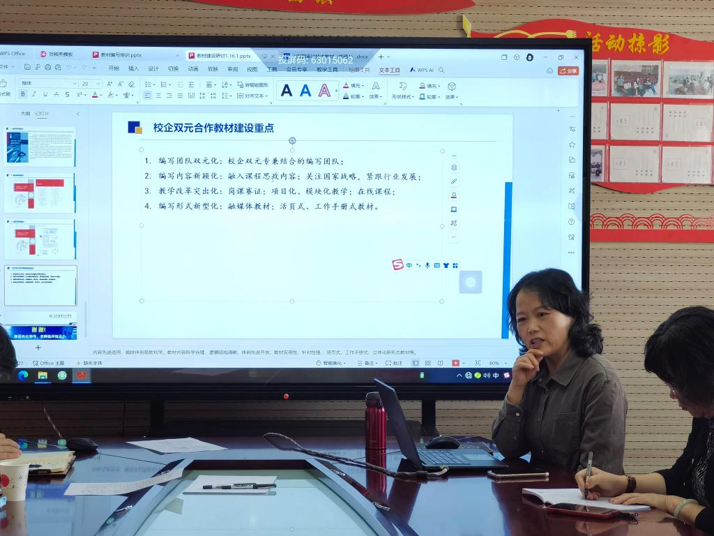 为贯彻落实党的二十大报告中对职业教育的指示精神,深入进行工学一体化教学改革,落实立德树人根本任务,促进职业院校专业建设创新发展,尽快推进我院立项校本教材项目建设,3月27日,我院特邀请包头职业技术学院曹朝霞教授开展2023年立项校本教材项目专项培训。