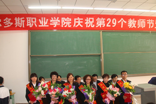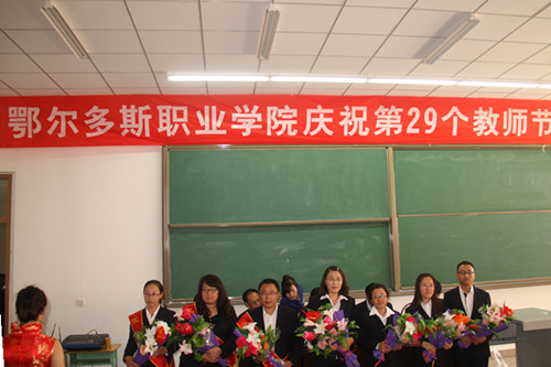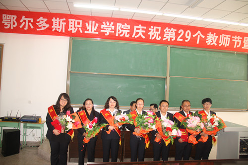 大会首先由副院长王贵宣读表彰决定,并通报学院一年来涌现出来的先进典型。随后,学院领导为祁玉兰等7名优秀教师、高秀梅等7名先进教育工作者颁发荣誉证书,并表彰奖励了在各级各类技能大赛中获奖的教师。学生代表向获奖教职工献花,表达节日祝福。