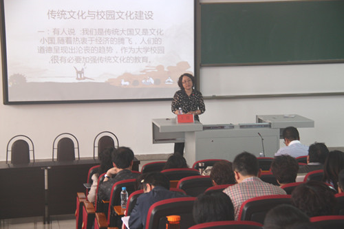 党委委员、副院长阿拉腾敖日格乐主持会议,会上,基础部老师王霞讲了题为“解读传统文化,推进校园文化发展” 的专题讲座,播放了国学应用大师翟鸿燊关于传统文化与国学的视频资料,通过观看大家都觉得受益匪浅。