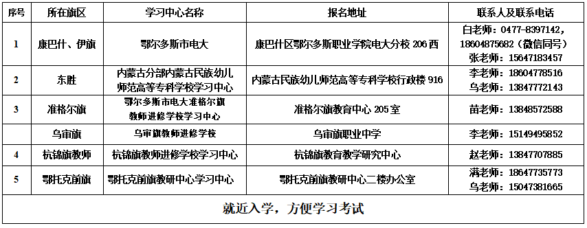 我校不与中介机构合作招生,报名学员请到各旗区教学点学习中心现场报名或联系教学点相关老师线上报名,维护自身权益,谨防上当受骗。
