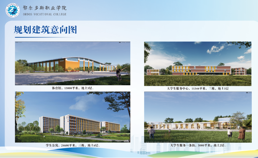 宏图绘就,抓紧落地!学院抢抓国家、自治区和鄂尔多斯市高度重视职业教育的机遇,积极争取投资和项目开工。2023年6月,鄂尔多斯市人民政府第9次常务会议决定实施高校办学条件提升项目,其中开云手机官方版在线入口办学条件提升项目总建筑面积 8.24万平方米,总投资4.85亿元,包括3栋学生公寓,1 栋人才公寓,1栋食堂和1栋研究院(包括学术交流中心)。该项目已于2024年8月正式开工建设,2026年6月将竣工投用。