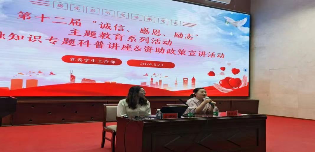 5月23日下午,我院开展第十二届“诚信、感恩、励志”主题教育系列活动——“守诚秉信树佳风,远‘贷’不怠思慎笃”金融知识专题科普讲座与资助政策宣讲活动,各系部专兼职辅导员及400余名学生参加活动。