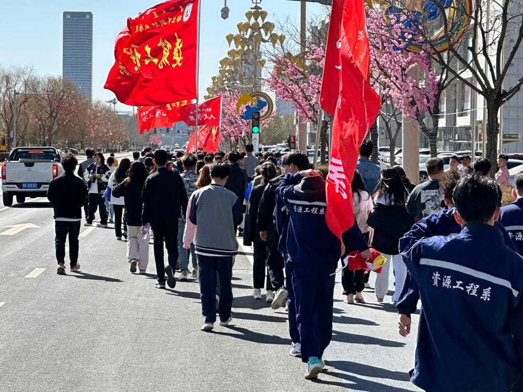 “心中有理想,脚下有力量!”广大团员青年高举旗帜,信心满怀地踏上徒步的征程。通过这场与意志相伴的徒步之旅,学子们纷纷表示,要铭记历史、不忘初心、牢记使命,把对革命先烈的追思、敬仰转化为奋斗拼搏的动力,传承红色基因、担当未来重任,在学习拼搏筑梦的征程上砥砺奋进、勇往直前。
