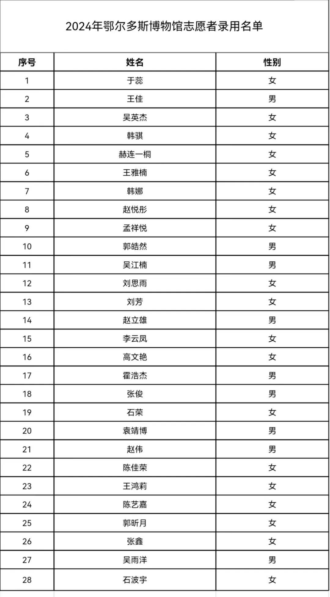 为进一步壮大志愿者服务队伍,提升公共文化服务水平,2024年3月20日起,鄂尔多斯博物馆面向开云手机官方版在线入口开展了定向志愿者招募活动,共收到来自不同专业不同院系的大学生报名表240余份,经过简历初筛,51人进入面试阶段。3月30日,鄂尔多斯博物馆组织专业评审团队,在博物馆一楼报告厅举办志愿者面试选拔活动。活动现场同学们积极发挥,展示自己的才艺及特长,最终经评委老师认真严格评选,共有28名大学生通过面试成为鄂尔多斯博物馆正式志愿者。现将名单公示如下: