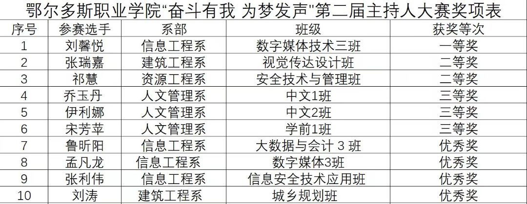 10月30日,学院青春之声社团、青春鄂职-思响E职社团在报告厅举办“奋斗有我,为梦发声”学院第二届主持人大赛决赛,吸引500余人现场观看,决赛评委由播音与主持艺术、中文、思想政治教育专业的教师担任。