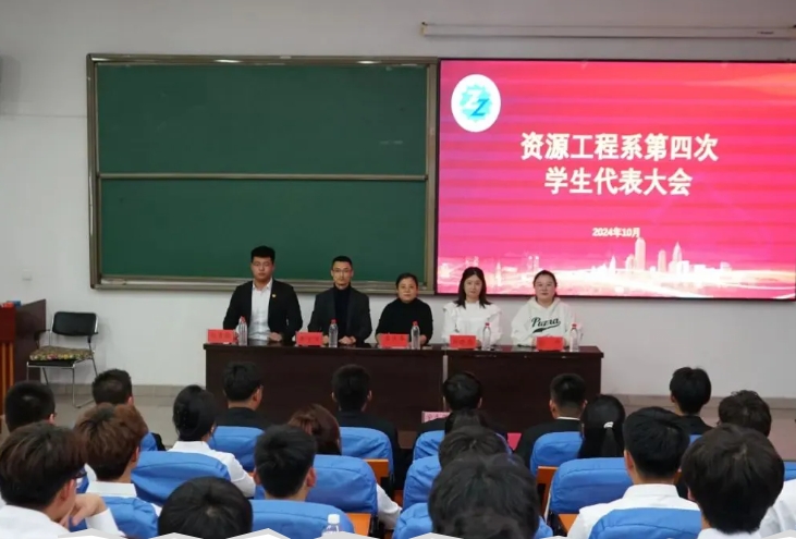 10月31日,资源工程系第四次学生代表大会在教学楼122教室隆重举行。本次大会旨在总结过去一年学生会的工作成果,选举产生新一届学生会主席团成员、团总支副书记及部门负责人,并规划未来一年的学生会工作努力的方向。资源工程系党总支副书记卓庆奉,团总支书记李子洋,辅导员高晓燕、张丹,第三届学生会执行主席赵晋毅,志愿服务部部长肖毅及学生代表参加。
