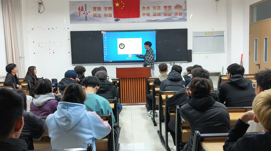 11月12日,思响e职理论宣讲团共67名同学在教学楼阶梯教室220开展了“建设‘平安校园防火先锋’”活动。活动中,同学们共同学习消防知识,积极回答自己掌握的消防设施和器材的使用,提高应急能力。