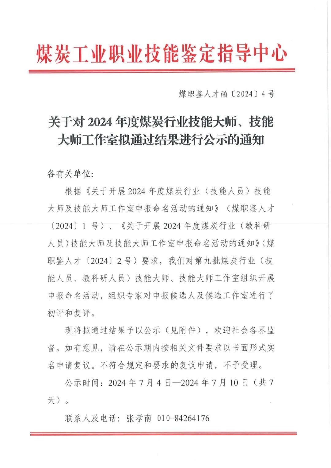 近日,煤炭工业职业技能鉴定指导中心公布了2024年度煤炭行业技能大师、技能大师工作室拟通过结果,我院资源工程系教师巴蕾、卓庆奉入选煤炭行业技能大师,任建峰技能大师工作室获命名。