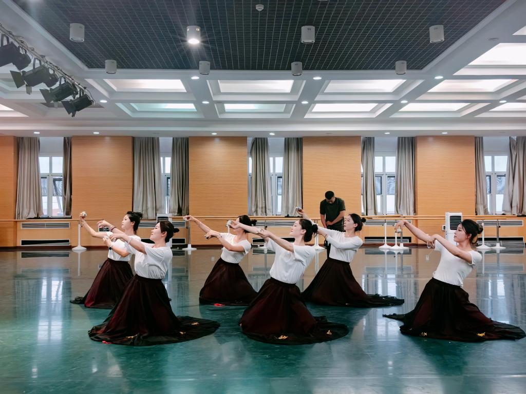 最后,奇梦雨老师带领学生一起演绎贾作光先生创作的《鄂尔多斯舞》。《鄂尔多斯舞》是1955年中国青年艺术团在波兰华沙举行的第五届世界青年与学生和平友谊联欢节上的一等奖作品,曾为祖国争得了无上荣耀。舞蹈热情、活泼、粗犷、有力,表现了鄂尔多斯高原牧民们乐观向上的精神风貌,具有鲜明的时代特色。