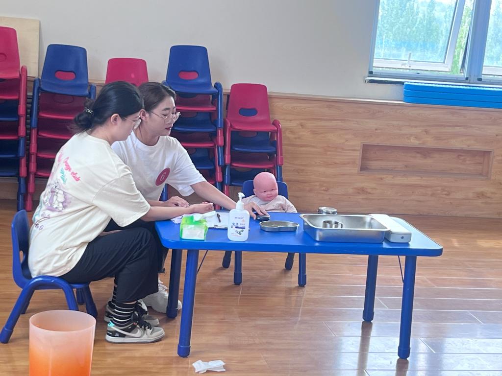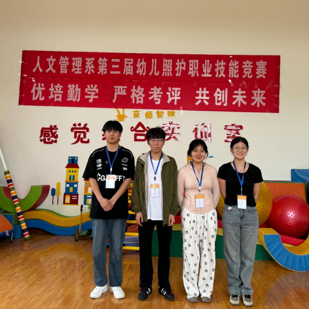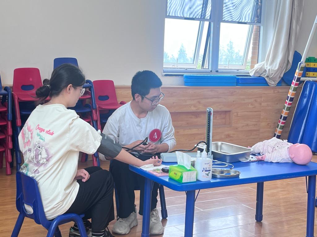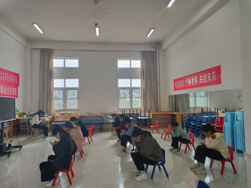 本次比赛严格参照1+X幼儿照护职业技能操作的各项标准进行,人文管理系幼儿照护项目组负责人郭亚凯老师组织考试,邬鹏飞、冯宏祥、杨慧娟、李宁远、郝宜乐五位老师担任考评员。