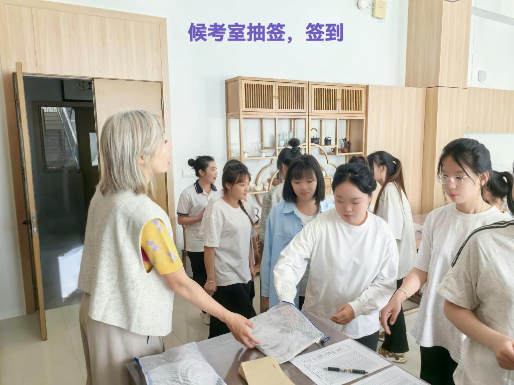 选手们有序候考,工作人员严格记录每位候考选手进入备赛室的时间,确保比赛流畅进行。