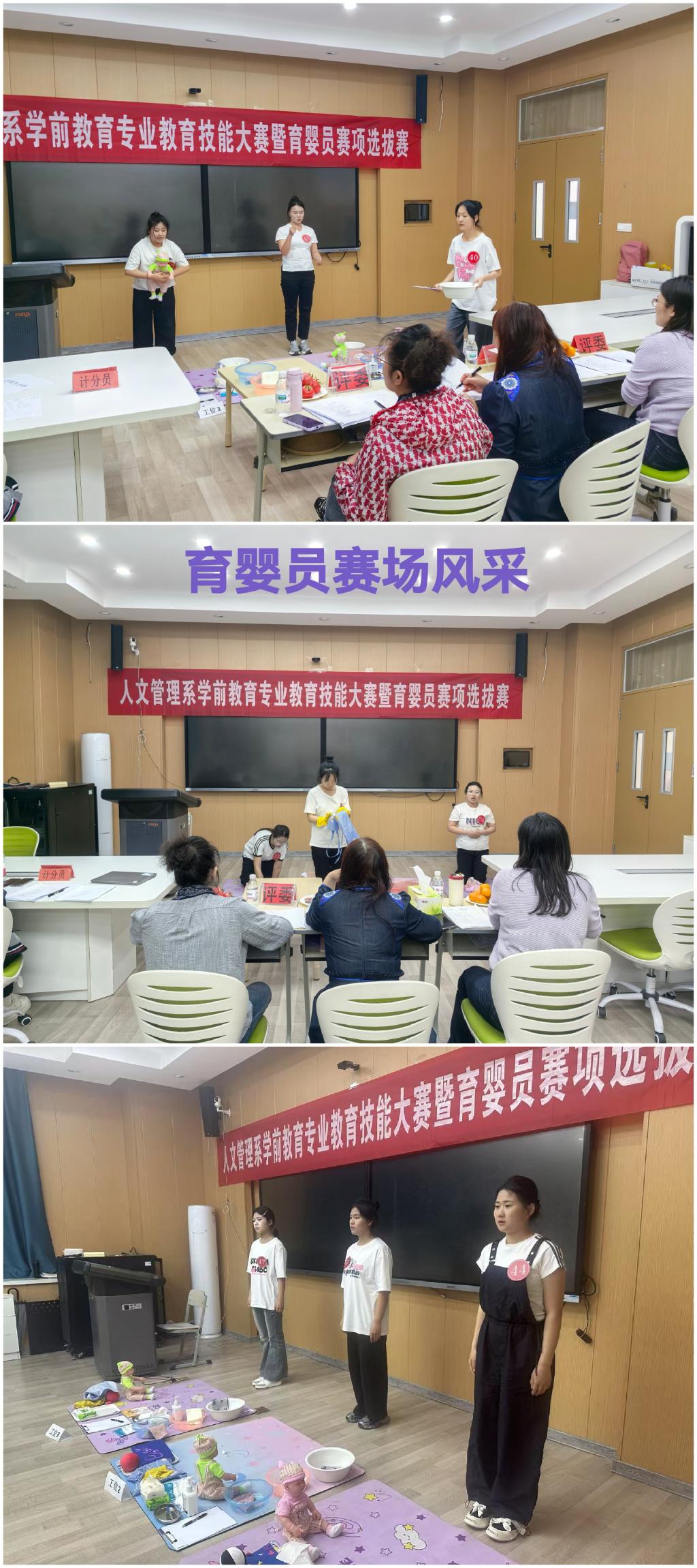 为深化产教融合,锤炼学生职业技能,人文管理系学生专业技能大赛暨育婴员选拔赛历经理论与实操双重选拔,于5月16日圆满落幕。本次赛事以“以赛促学、以赛提质”为目标,通过理论夯基、实操砺能,为学子搭建展示专业素养的舞台,吸引众多师生积极参与。
