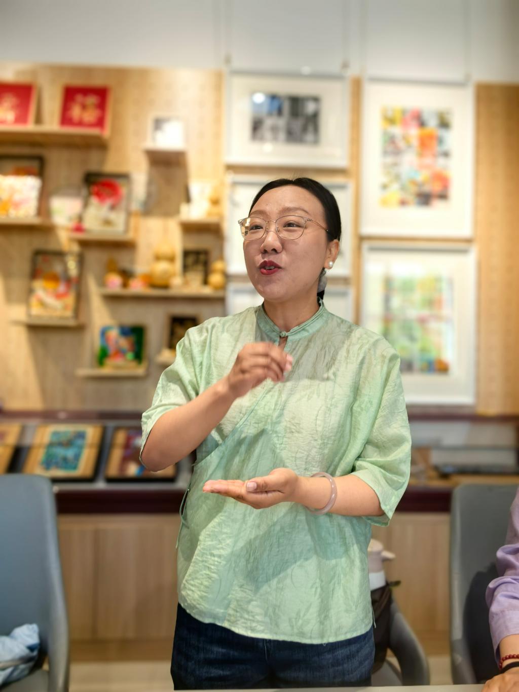活动以“老师们心中的非遗故事……”拉开帷幕。教师们化身文化讲述者,从北方剪纸的灵动线条、皮影戏的光影艺术,讲到扎染的蓝白韵律、漆器工艺的千年沉淀。一张剪纸背后的民俗寄托、一段皮影戏演绎的家国情怀、一方扎染布承载的民族智慧……非遗不再只是“老手艺”,而是被赋予了教育者的情感与使命。“每项非遗都是先人智慧的结晶,作为教师,我们有责任让这些文化‘活’在课堂、融入生活。”郭娟老师在分享中感慨道。