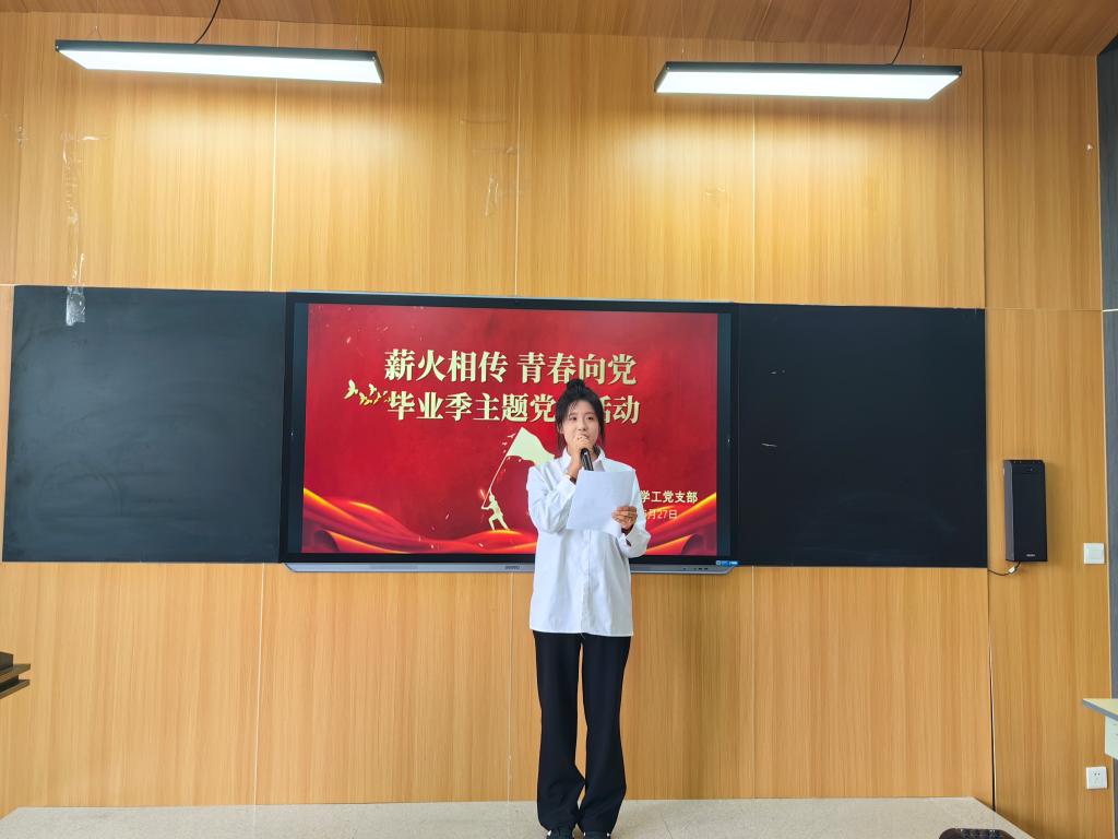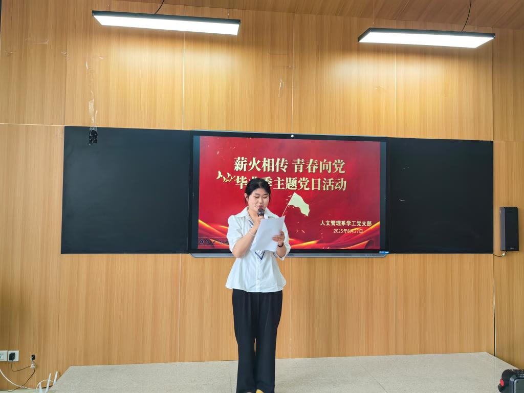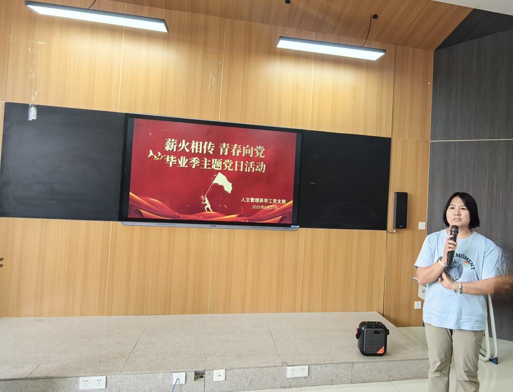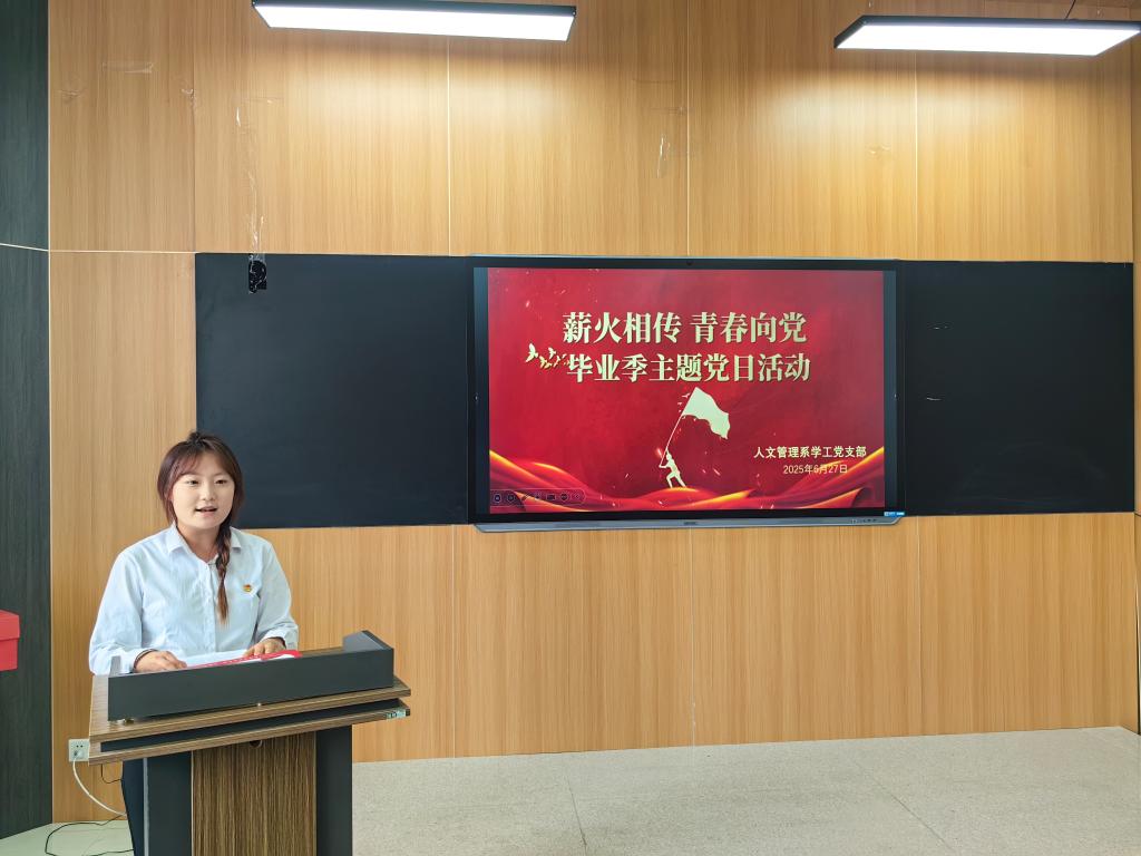 活动伊始,人文管理系党总支副书记高慧同志发表了热情洋溢的致辞。高书记首先向顺利完成学业的学生党员们表示热烈祝贺,同时结合七一建党节的重要意义,带领党员们回顾了党的光辉历程,阐述了新时代党员肩负的使命。她深情寄语毕业学生党员,希望大家在离开校园后,始终牢记党员身份,将个人理想融入党和国家事业发展之中,在各自的岗位上发光发热,永葆共产党员的先进性和纯洁性,以实际行动为党庆生,为党旗增辉。