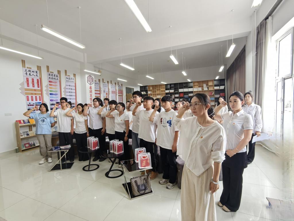 最后,全体党员面向鲜红的党旗,在支部书记段泳遥的带领下,重温入党誓词。“我志愿加入中国共产党……随时准备为党和人民牺牲一切,永不叛党。”铿锵有力的誓言回荡在活动现场,每一位毕业学生党员神情庄重,声音洪亮,用誓言表达着对党的忠诚和为共产主义事业奋斗终身的决心,这铮铮誓言不仅是对入党初心的回溯,更是对未来前行道路的庄严承诺。