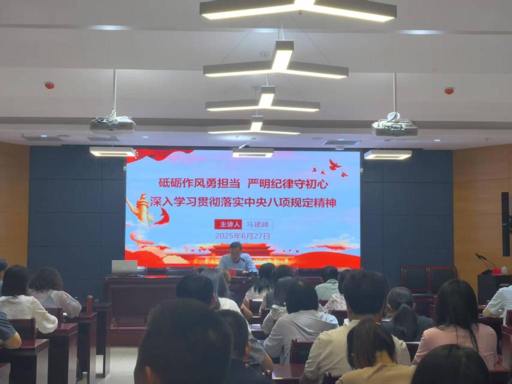 为持续推进全面从严治党,深化作风建设,6 月 27 日,学院党委书记马建峰以“砥砺作风勇担当 严明纪律守初心”为题讲授专题党课,暨人文管理系党总支第八次集中学习,会议聚焦贯彻落实中央八项规定精神学习,推动作风建设与育人实践深度融合。