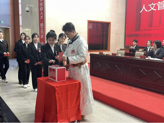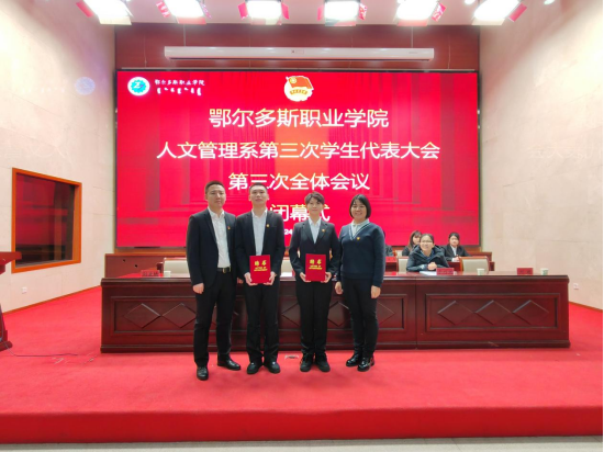 人文管理系党总支副书记高慧、人文管理系学生与管理综合科科长王磊为新一届主席团成员颁发聘书。
