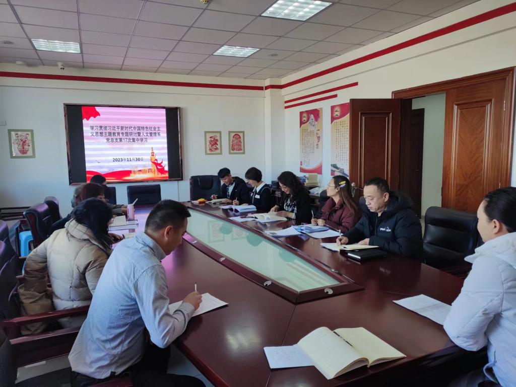 11月30日,人文管理系党总支在教研楼431会议室组织全体教师党员进行学习贯彻习近平新时代中国特色社会主义思想专题研讨暨总支第17次集中学习。