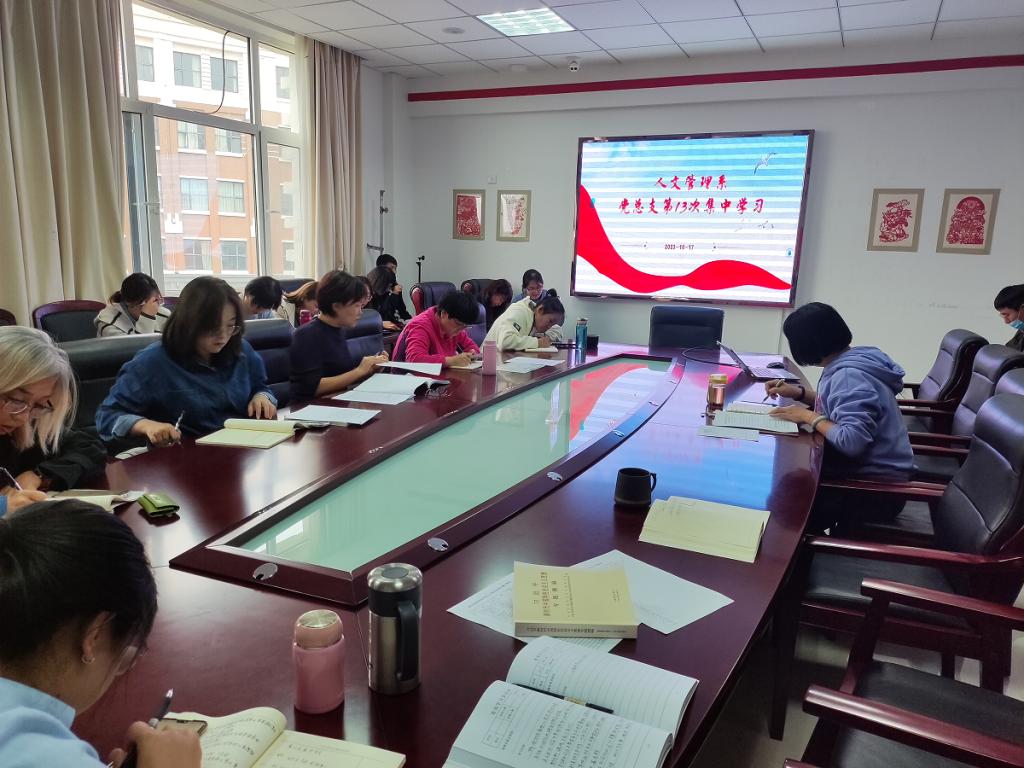 为进一步学习贯彻习近平新时代中国特色社会主义思想主题教育,10月17日下午,人文管理系党总支在教研楼431组织全系教师进行学习。本次学习也是系党总支的第13次集中学习。系党总支副书记高慧主持会议。