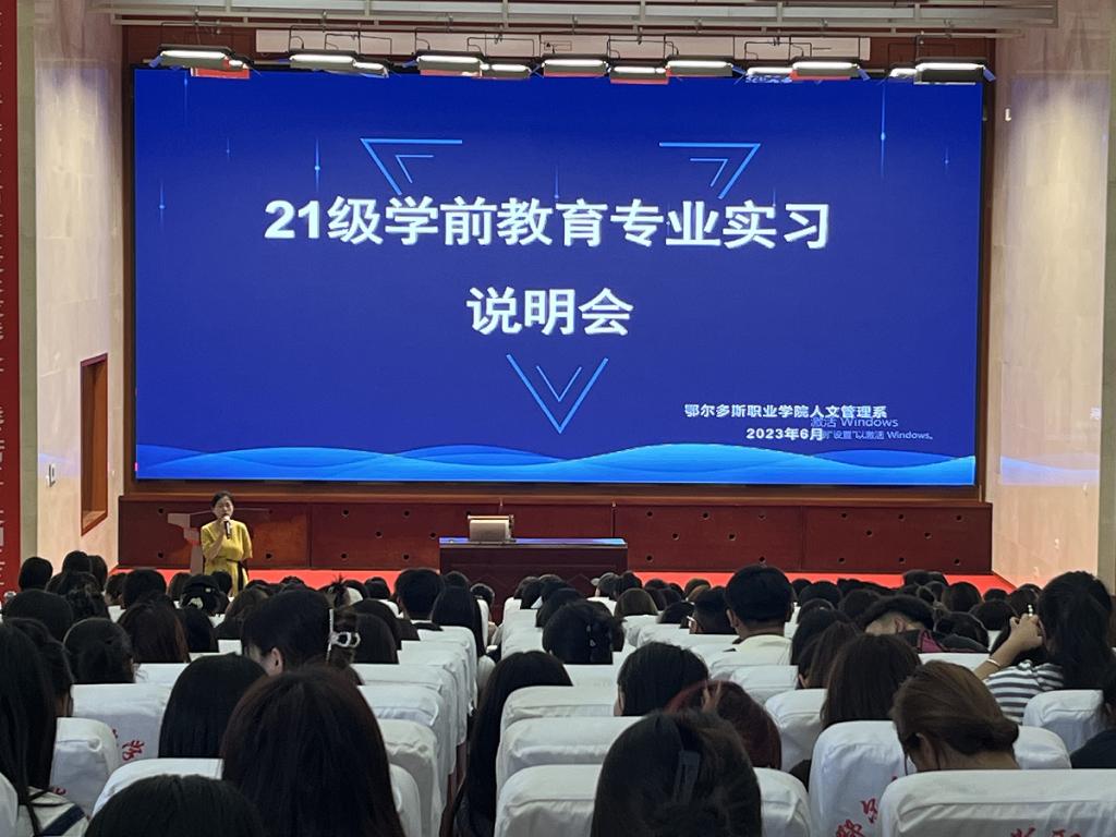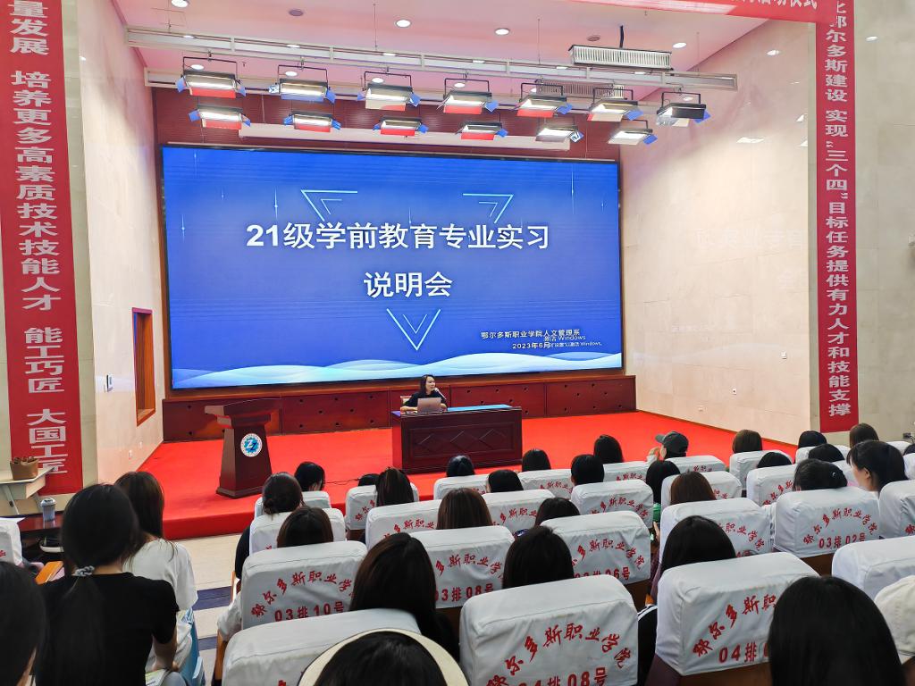 为提升学前教育专业学生对实习工作的认识,提高学生实习质量,2023年6月14日,人文管理系学前教育教研室在报告厅举办了2021级学前教育专业岗位实习说明会。