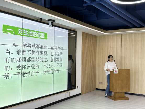 本次《天幕红尘》的阅读分享者是冯静老师,她通过故事反思自己、反观社会现象的方式,分享了书中主人公对生活、对女性、对金钱的价值观和信仰对自己的影响和启发,尤其对书中“见路不走”的观点感触颇深,让她深刻思考了自己与教育的联结以及后续的成长历程。