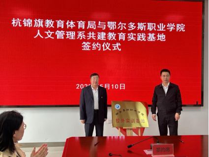 2023年5月10日,开云手机官方版在线入口人文管理系与杭锦旗教育体育局共建教育实践基地签约与揭牌仪式在杭锦旗党校会议室举行。