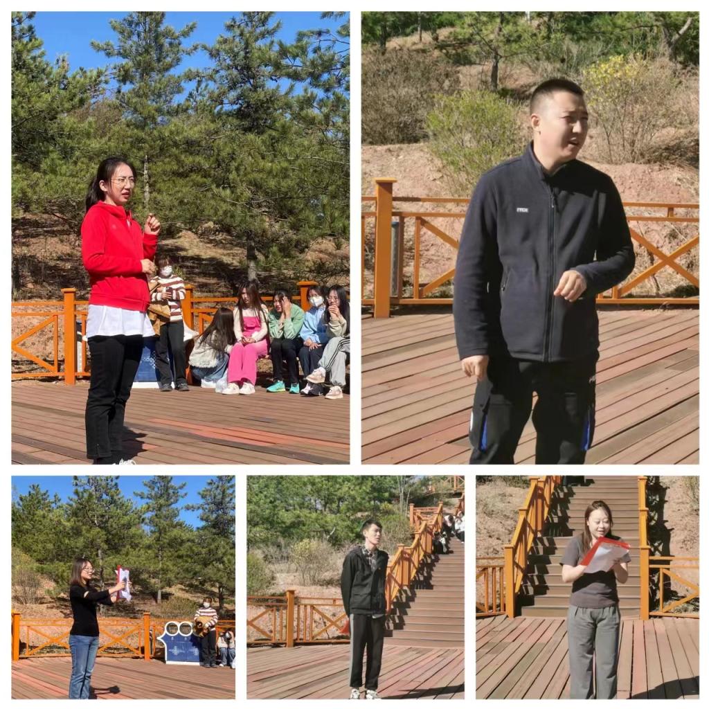 此次主题活动内容分为“行”和“习”两部分。行是师生党员、入党积极分子与共青团员从学校统一出发,徒步5.4公里到达指定地点;习是师生共同开展户外学习活动。学习活动在全体师生党员、入党积极分子与共青团员庄严地重温入党誓词、入团誓词声中拉开帷幕。学生代表金禹佟为大家讲述五四运动的由来,教师党员刘亚楠、李慧娟、李超、王磊、段泳遥等同志为大家分享五四故事,通过青年故事勉励广大青年学生立大志、增本领、重实践,明确青年人应肩负的历史使命与责任担当,传承并发扬五四精神,积极向上,不怕困难。最后,此次主题活动在五四运动知识竞赛热烈的气氛余温中,在师生同唱《我的祖国》歌声中结束。