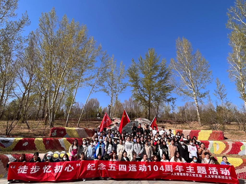 青春焕发着蓬勃生机,青年蕴藏着无限力量!一个有远见的民族,总是把关注的目光投向青年;一个有远见的政党,总是把组织的基础植根于青年。习近平总书记在党的二十大报告中勉励广大青年要“坚定不移听党话、跟党走,怀抱梦想又脚踏实地,敢想敢为又善作善成,立志做有理想、敢担当、能吃苦、肯奋斗的新时代好青年,让青春在全面建设社会主义现代化国家的火热实践中绽放绚丽之花。”为提升党团共建质量,扎实推进党建带团建、促进学生更好地学习五四运动内容、践行五四精神,4月25日下午,人文管理系党总支学工支部、人文管理系团总支带领师生党员、入党积极分子、共青团员开展“徒步忆初心——纪念五四运动104周年”主题活动。