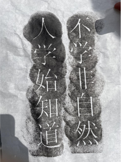 经过细心制作,“拓片”作品完成了!“古代没有照相机,原来古人是用这种方式保留文化作品啊!太智慧了!”同学们纷纷赞叹拓印文化的博大精深。