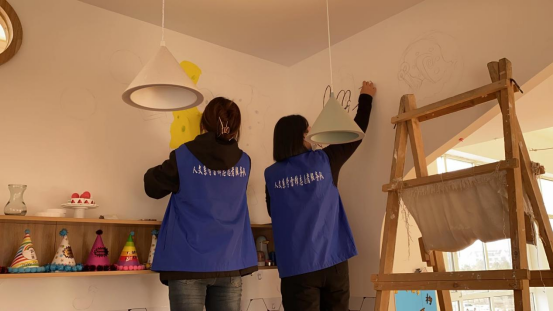 活动中,同学们发挥互帮互助的精神,团结协作,历时3小时完成了厨房墙面设计和鞋柜设计。与此同时,同学们也感受到志愿服务的快乐与辛苦,增强了志愿服务队团结集体意识。大家纷纷表示,此次环创活动收益良多,既锻炼了专业素养,发扬了服务奉献精神,更进一步明确了作为一名幼儿教师的职责。