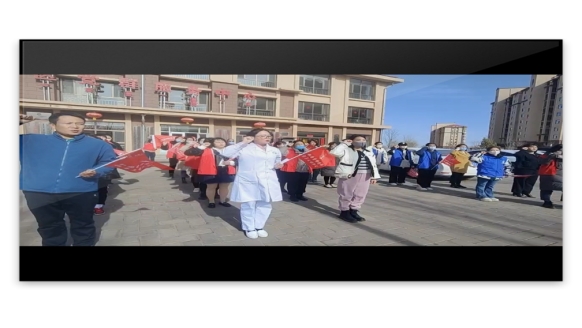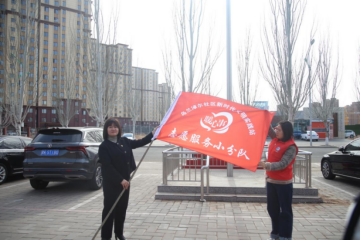 志愿者们在乌兰淖尔社区门前集合完毕,由乌兰淖尔社区书记雷艳为乌兰淖尔社区新时代文明实践站暖阳服务队志愿者代表授旗,志愿者代表带领全体志愿者庄严宣誓。
