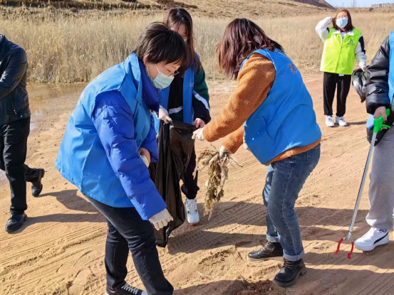 党总支成员身穿志愿服,来到康巴什区阿布亥沟进行垃圾清理活动。参加活动的同志们手拿垃圾夹、垃圾袋等工具,在党总支书记杨梅同志的带领下,大家有条不紊、热情高涨,在劳动过程中分工明确、互相合作,发扬团结协作的精神,积极捡拾地面上、草丛内的垃圾,让阿布亥沟卫生环境更加洁净。