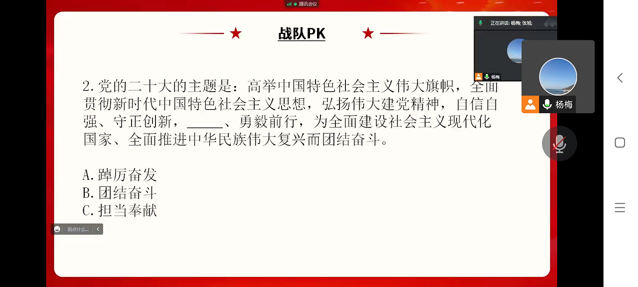 党课结束后,党总支组织了党的二十大知识竞赛。在激烈的比赛过程中,党员教师学习热情高涨,对党的二十大精神有了更深入的了解。