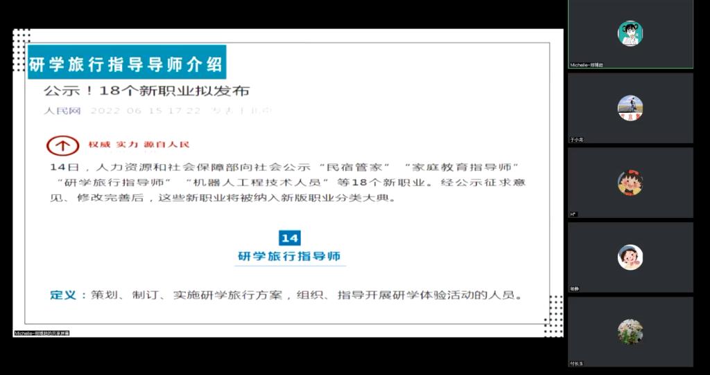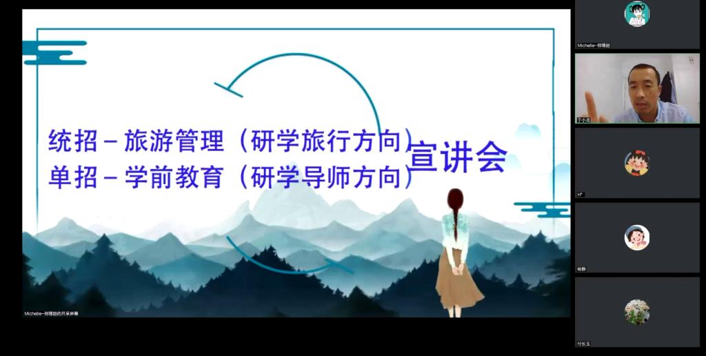 说明会邀请我系各专业负责人对专业培养目标、主干课程、就业方向等进行了解读。系旅游管理和酒店管理与数字化运营专业负责人于小龙结合研学旅行方向重点介绍了研学指导师这个职业,并邀请2021届学前教育专业毕业生石昕丽(目前在研学旅行机构工作)介绍了其目前的工作状态,引导新生树立职业规划思维意识。于小龙强调,新生要将自己的性格爱好特长与所学专业、就业方向统筹考虑,在学校管理制度允许的范围内进行调整优化。